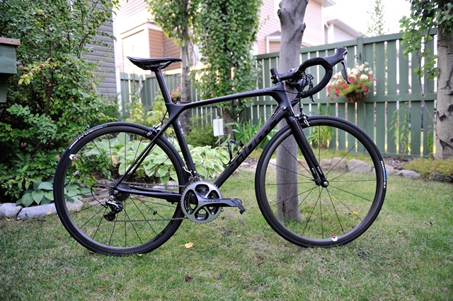 No i nie wytrzymalem i chyba kupilem juz ostatnia szose do 'powaznego' jezdzenia. Rower jak w tytule, model z 2016 Roku ale nowy. Caly na mech DA, 53*36, kaseta 11-28. Kupilem do niego pedaly Look Keo Blade Carbon Ti. Zmienilem motylki na duzo lzejsze (Zipp Aero Titanium) takze detki na Conti Ultrasonic, tylna opone na Pro 4/200g. Siodelko zmienilem na Bontragera Paradigm XXX, koszyk do bidona to karbonowy Bontrager RXL.Pozostala jeszcze kiera do wymiany na karbon ale tutaj sie nie spiesze po na razie to pozycje mam naprawde dobra. Calosc bez pulsometra Polara wazy 6.57kg. Rower co tutaj duzo mowic - bajka!